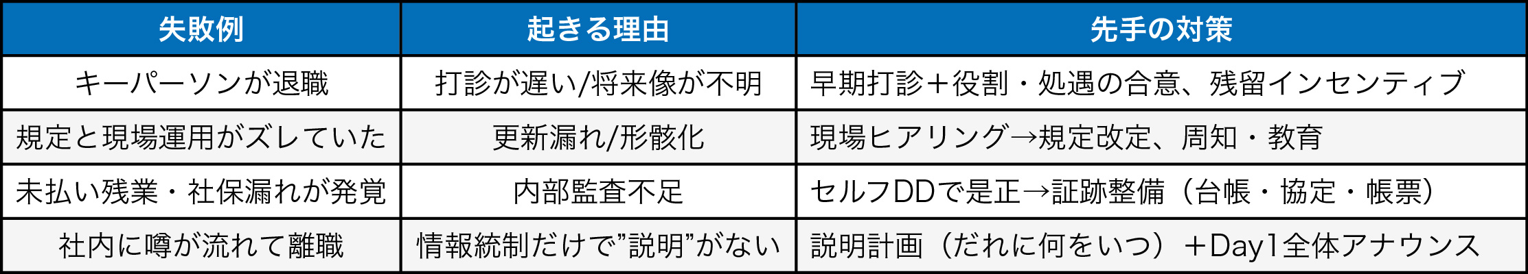 ―― 初めて M&A を検討する経営者が必ず抱く不安です。結論から言うと、人材・労務の整理は“会社の価値そのもの”。ここが整っているほど、成約リスクは下がり、評価(価格・条件)は安定します。